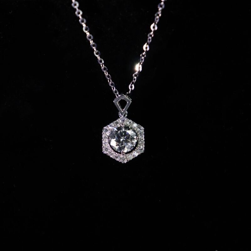 1Ct Round Cut VVS1 D 18k Gold Pendant Necklace with Hexagonal Classic Micro Inlaid Diamond Luxury Jewelry for Weddings Parties $999.00